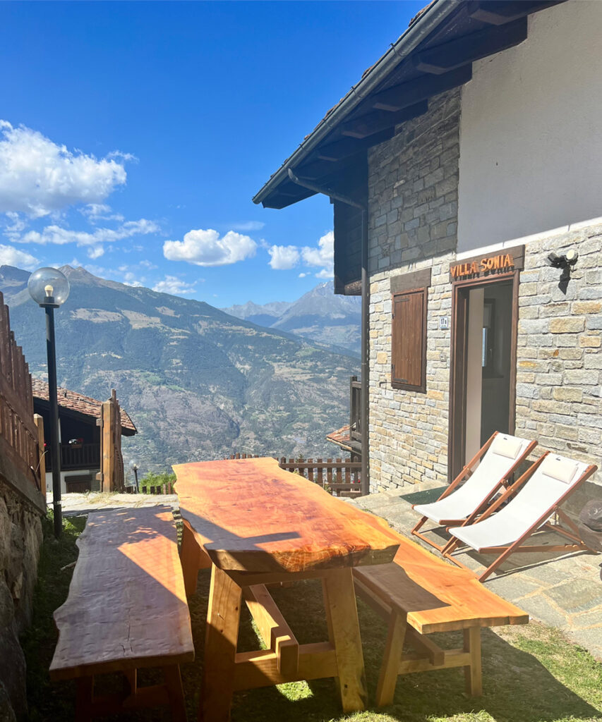 The house is located on an altitude of 1500 meters and from the terrace you can enjoy breathtaking views of the city of Aosta and the peaks of Monte Bianco, Grand Combin and Monte Rosa. Gioia di Vivere is a detached house and features 4 bedrooms, 2 bathrooms and a sauna and jacuzzi. Ideal for 6-8 people.